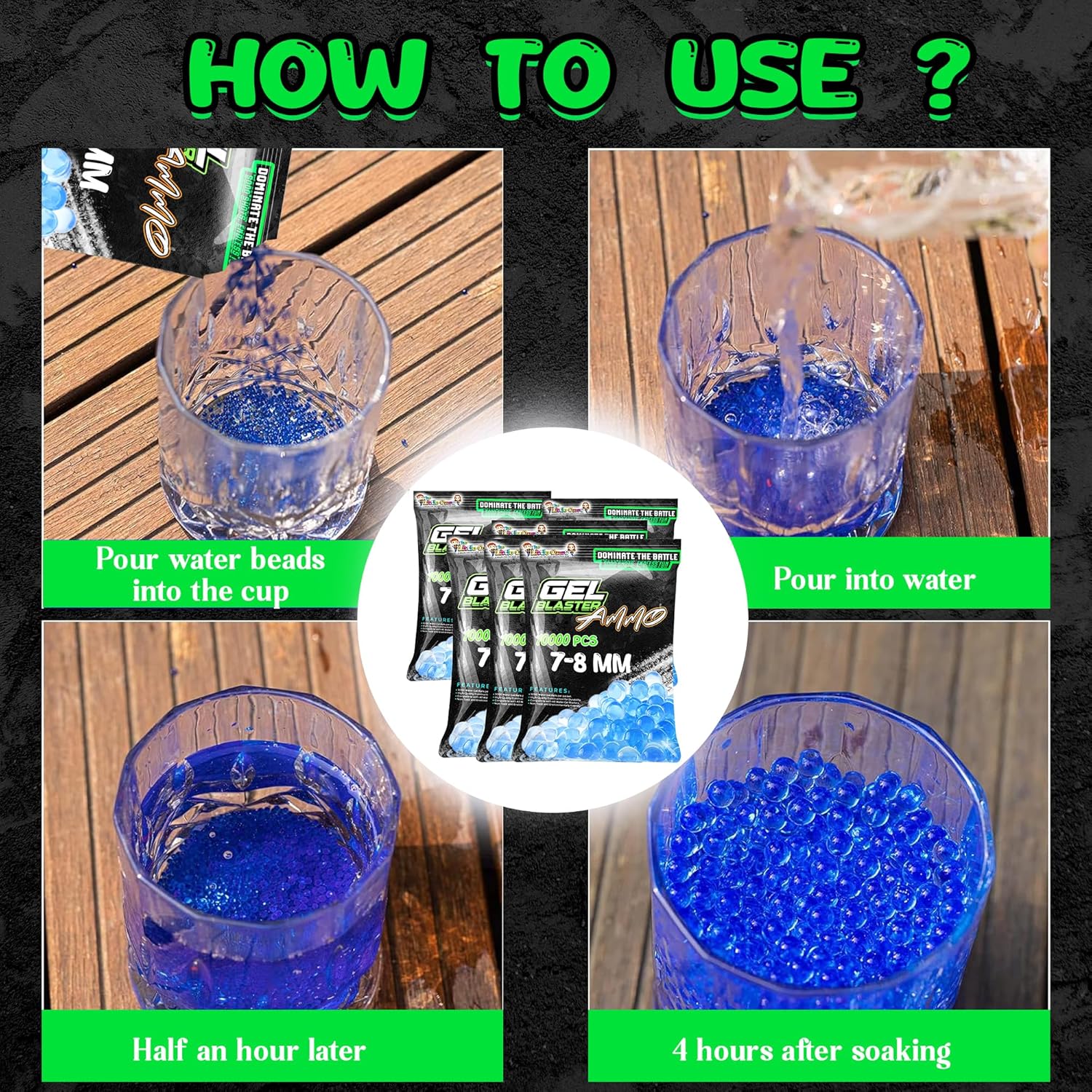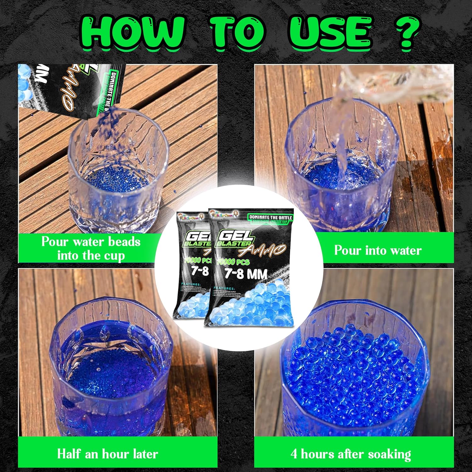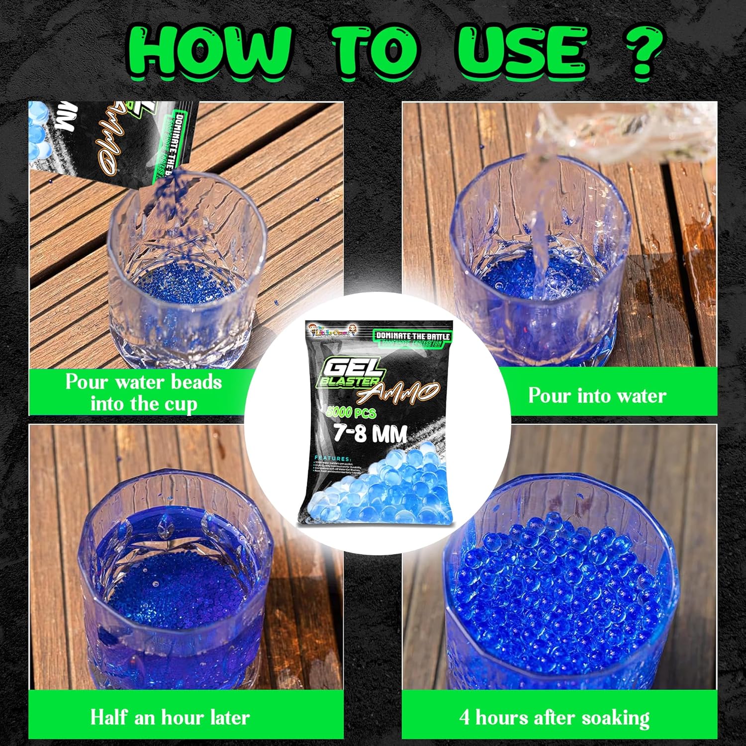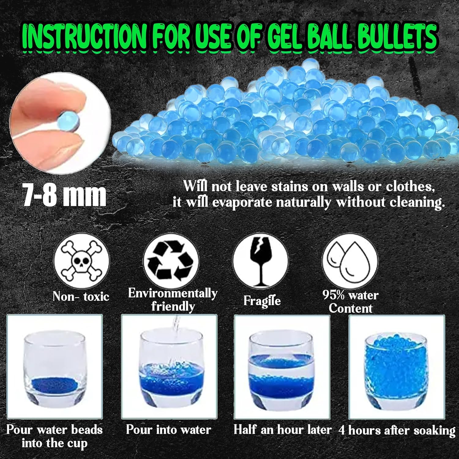 - ๐ [Premium Quality Gel Bullets] - Crystal-clear blue + Green water beads ensure smooth firing, jam-free performance, and consistent ammo size for all types of gel blaster guns.