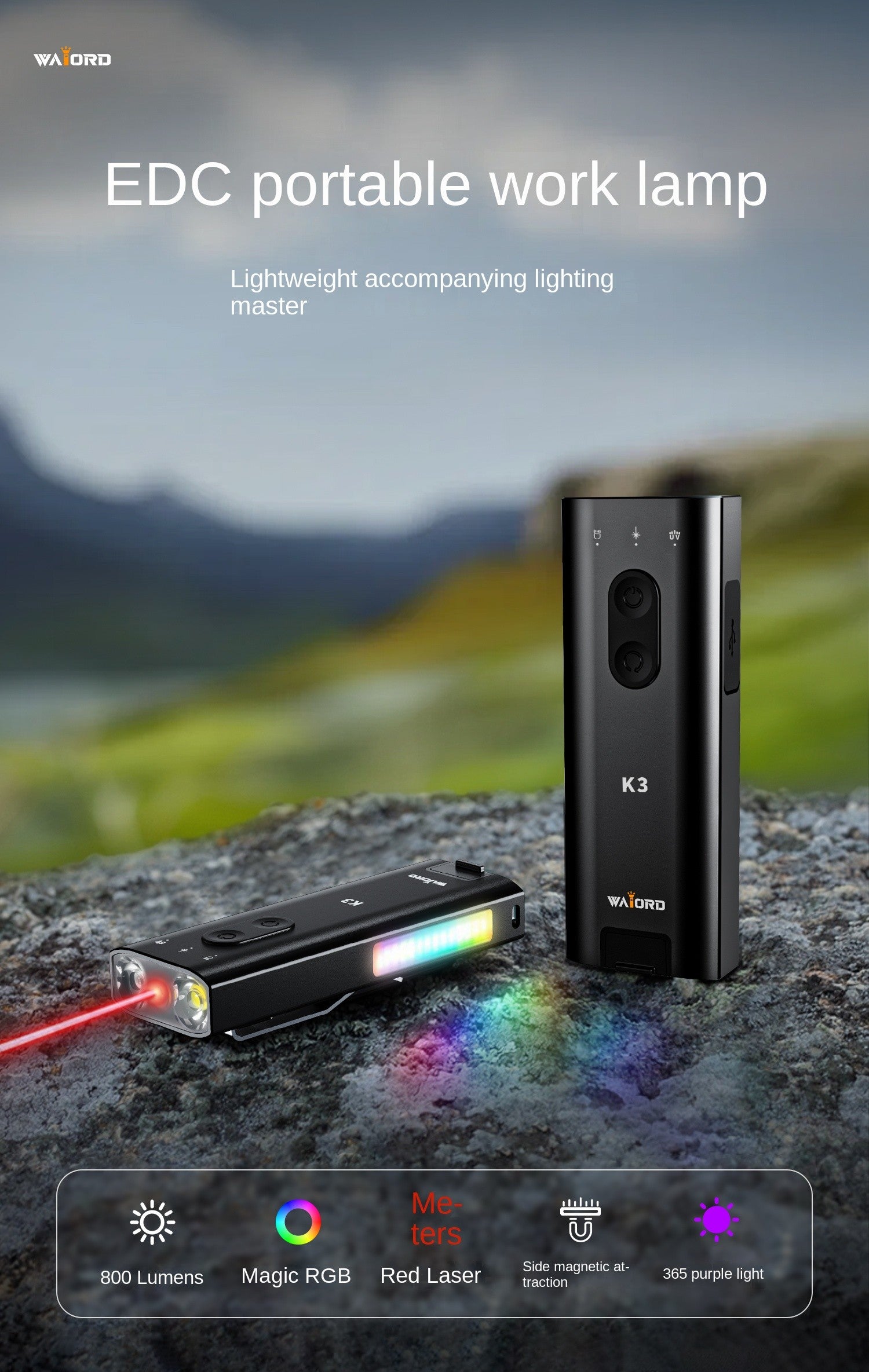 The K3 ultra is a tiny, 40g everyday tool thats surprisingly capable for its size. It gives you bright, versatile lighting, instant ignition capability, and a range of practical on-the-go functionsall in a compact build that disappears into your carry. Slip it onto a keychain or pocket, and it stays with you without ever getting in the way. Precision Front Lighting SystemThe front module combines three precision tools800-lumen focused beam for powerful long-distance lightingRed laser for pointing and alignment365nm UV light for document checks, detecting hidden stains, and quick inspectionsPerfect for night use, detail work, and everyday checks. Adaptive Side Illumination ModesThe side panel adds lighting options you wont find on a typical flashlightYellow flood light for reading, repairs, and wide-area close-up lightingRGB fill light ideal for photos, videos, product shots, and mood lightingRedblue strobe for signaling and emergency visibilityA versatile set of modes for creators, commuters, and everyday carry users. Integrated Rear Ignition ModuleA built-in ignition module provides instant ignition capability for quick outdoor needs.Activates with a 2-second pressAuto shuts off after 7 secondsCan be stopped with any buttonPractical, safe, and always ready when you need it. Mounting & Carry OptionsDesigned for hands-free convenience anywhereMagnetic side mount attaches to metal surfaces instantlyHat-brim clip turns it into a lightweight headlampKeychain-ready size and weight keep it with you at all times Battery & ChargingPowered by a 750mAh Type-C rechargeable battery, the K3 charges fully in about 90 minutes.Up to 2.5 hours of runtime on the main beamUp to 4.5 hours on side lighting Weather ResistanceWith an IP65 rating, it withstands rain, splashes, and daily use without worry.Compact, ultra-light, and packed with useful featuresthe K3 UltraMulti is the EDC tool youll reach for every day.The K3 UltraMulti is a tiny, 40g everyday tool thats surprisingly capable for its size. It gives you bright, versatile lighting, instant ignition capability, and a range of practical on-the-go functionsall in a compact build that disappears into your carry. Slip it onto a keychain or pocket, and it stays with you witThe K3 UltraMulti is a tiny, 40g everyday tool thats surprisingly capable for its size. It gives you bright, versatile lighting, instant ignition capability, and a range of practical on-the-go functionsall in a compact build that disappears into your carry. Slip it onto a keychain or pocket, and it stays with you wit