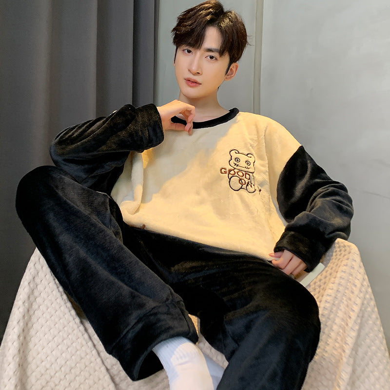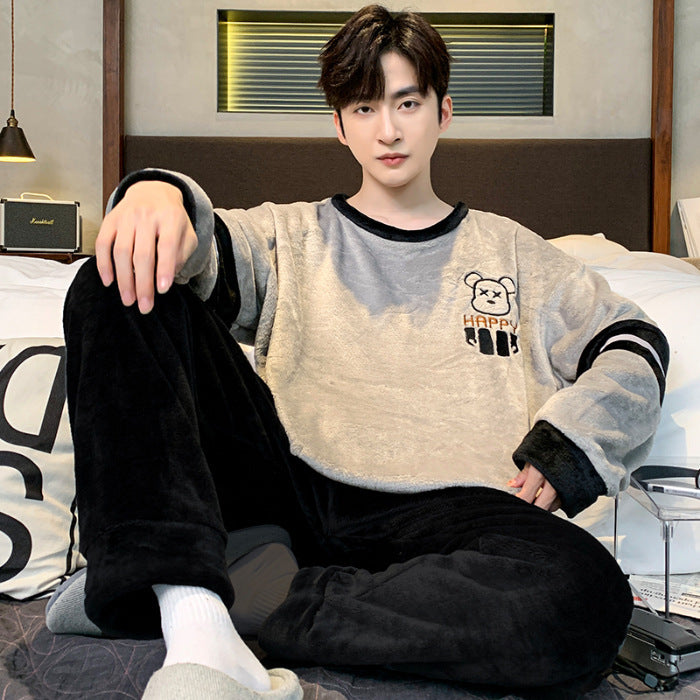 Pajamas Coral Fleece Fleece Lined Padded Warm Keeping Flannel Home Wear Winter Suit