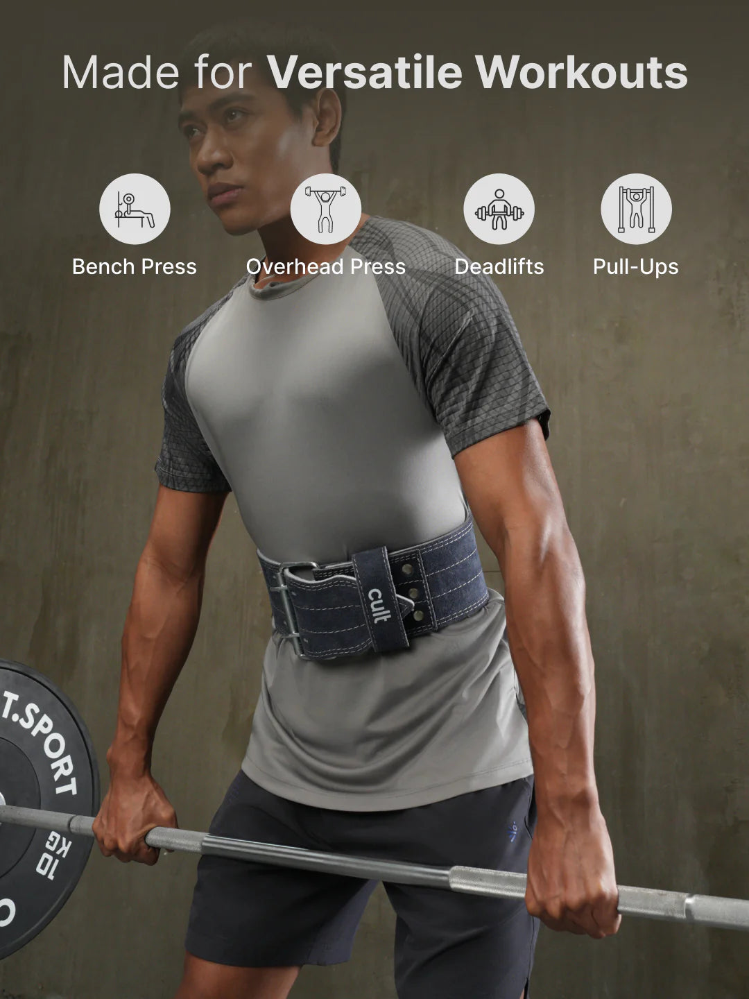 STRONG & DURABLE Made from premium-quality leather with a 6 mm thickness, this belt is built to withstand intense training sessions while providing long-lasting durability.ADJUSTABLE & SECURE FIT Featuring a durable buckle, it ensures a snug, adjustable fit, giving you the right support for heavy lifts without compromising comfort.MOISTURE ABSORBENT The sweat-absorbing material keeps you dry, while the odour-resistant design ensures lasting freshness, even through intense workouts. LOWER BACK SUPPORT Designed to provide essential lower back support, helping stabilise your core and reduce the risk of injuries during weightlifting. VERSATILE SUPPORT Built for squats, deadlifts, powerlifting, and heavy training, this gym belt provides stability and maximum performance.STRONG & DURABLE Made from premium-quality leather with a 6 mm thickness, this belt is built to withstand intense training sessions while providing long-lasting durability.ADJUSTABLE & SECURE FIT Featuring a durable buckle, it ensures a snug, adjustable fit, giving you the right support for heavy lifts withouSTRONG & DURABLE Made from premium-quality leather with a 6 mm thickness, this belt is built to withstand intense training sessions while providing long-lasting durability.ADJUSTABLE & SECURE FIT Featuring a durable buckle, it ensures a snug, adjustable fit, giving you the right support for heavy lifts without